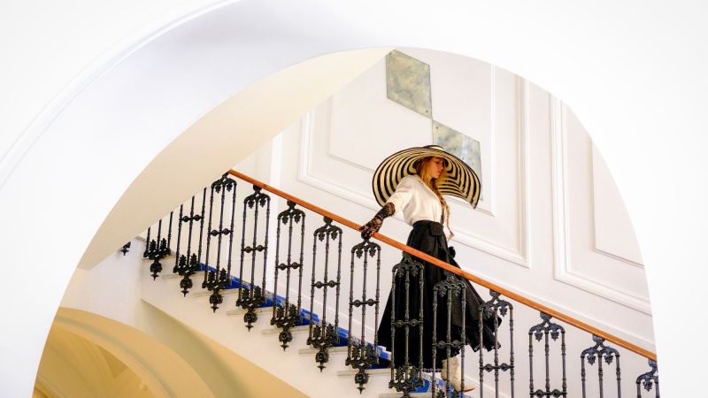 In the sequel, “Emily’s style is pushed, much more heightened,” in keeping with Kalfus. Her clothes, equipment, and that hat — the striped quantity worn whereas descending a resort’s grand staircase (that would block out the solar for a small village) — have all elevated in measurement.