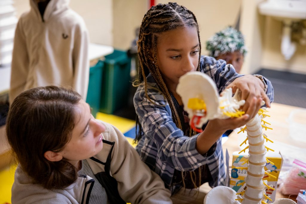 In the Fall 2025 sequence, college students realized about cell biology by isolating their very own cheek cells and viewing them underneath microscopes. They then made edible cell fashions utilizing rice muffins, cream cheese, and fruit. Another session targeted on biomechanics. Participants constructed mannequin “spines” from straws and tape earlier than creating celery-and-pretzel “critters” for a snack.