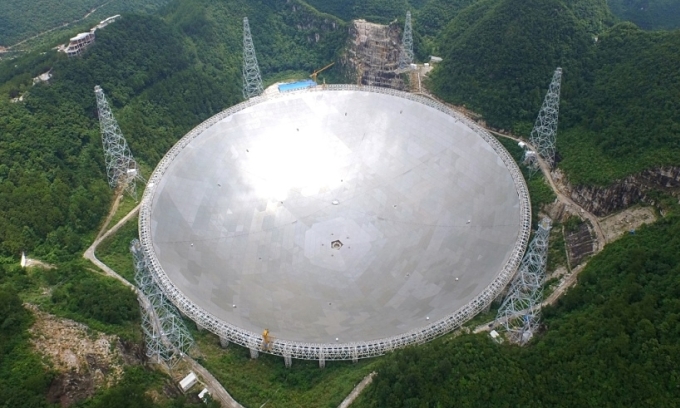 The Five-hundred-meter Aperture Spherical Telescope, the world’s largest single-dish radio telescope. Photo from National Astronomical Observatories, Chinese Academy of Sciences |