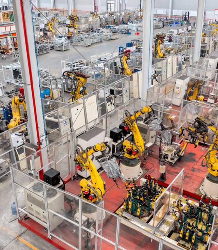 An aerial drone photograph taken on Jan. 8, 2024 exhibits robotic arms processing parts for new power autos at a private firm in Changxing Economic and Technological Development Zone of Huzhou City, east China’s Zhejiang Province. (Photo: Xinhua)