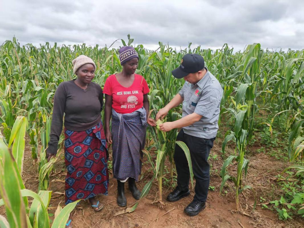 A Chinese skilled of Science and Technology Backyard in Malawi discusses corn maize yield-improvement methods with native college students. (Photo supplied by China Agricultural University)