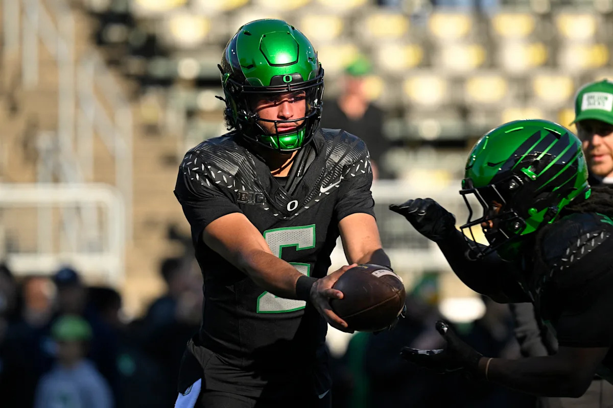 Dante Moore makes a pleasant throw to Kenyon Sadiq whereas beneath stress, and identical to that the Ducks take the lead.