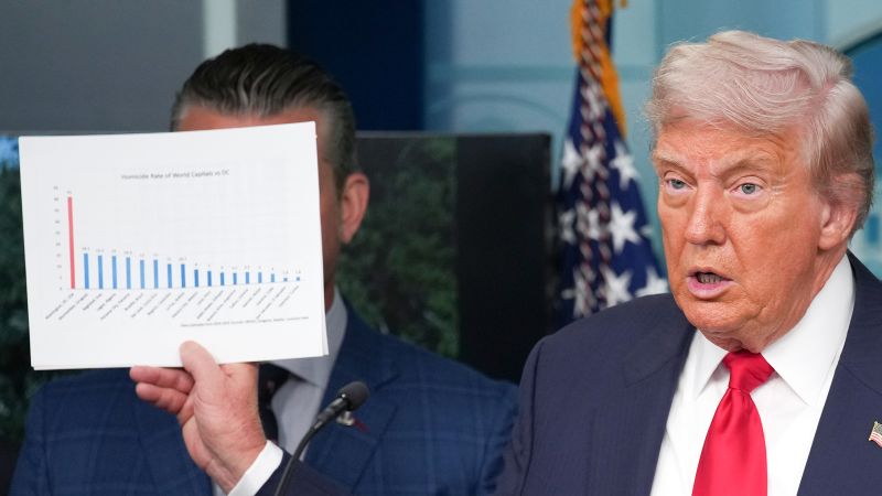 President Donald Trump, justifying his momentary federal takeover of policing in the nation’s capital, claimed at a press convention Monday that the violent crime scenario in Washington, DC, “is getting worse, not getting better.” He asserted in an govt order that “crime is out of control in the District of Columbia” and that there’s “rising violence in the capital.”