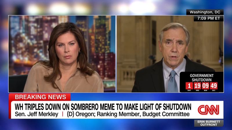 Sen. Merkley, rating member of the Budget Committee, reacts to President Trump posting one more meme of a sombrero, mocking the government shutdown and blaming Democrats over it.
