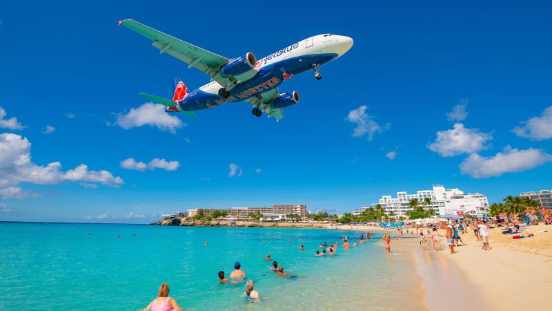 Maho Beach, on the Caribbean island of Saint Martin, is a paradise for aircraft followers and thrill-seekers. The touchdown strip at Princess Juliana International Airport is separated from the beach by a single highway, that means that at peak season as much as 70 flights a day come whizzing over the sand, almost close enough to touch.