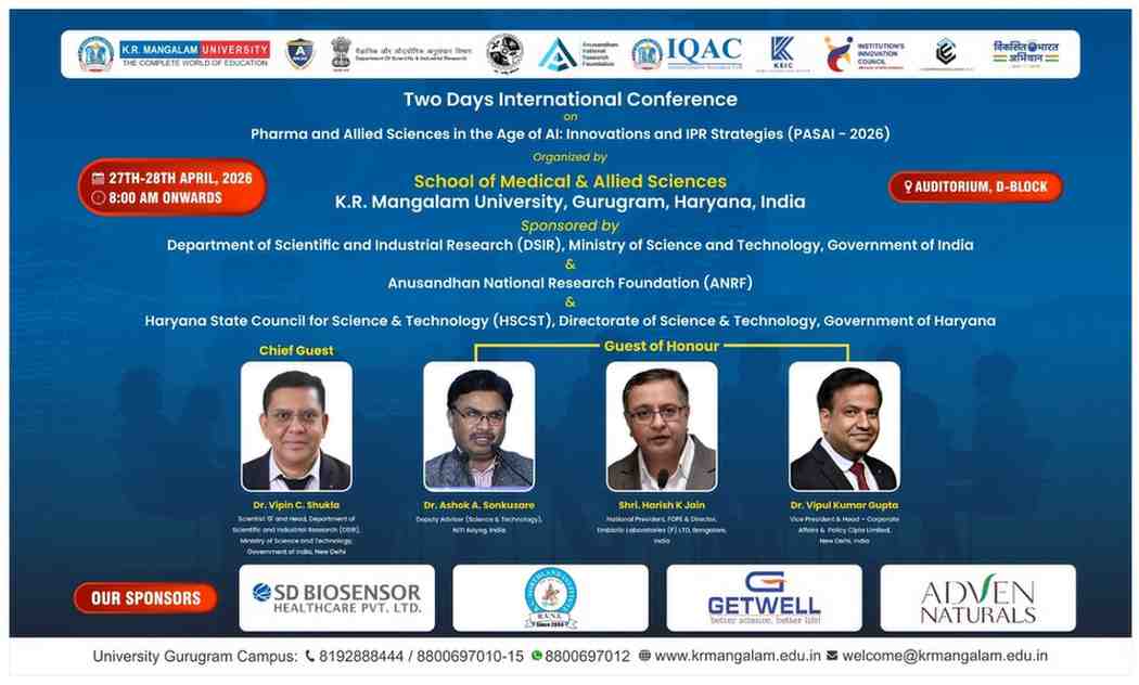 K.R. Mangalam to host I’tl Conference “Pharma and Allied sciences in the Age of AI: – Asian Community News Home School/College K.R. Mangalam to host I’tl Conference “Pharma and Allied sciences in the Age of AI: Sources Share this: Share on Facebook (Opens in new window) Facebook Share on X (Opens in new window) X Post navigation Ministry launches program to invest in outstanding doctoral research Drone & Geospatial Tech Training at PSTU