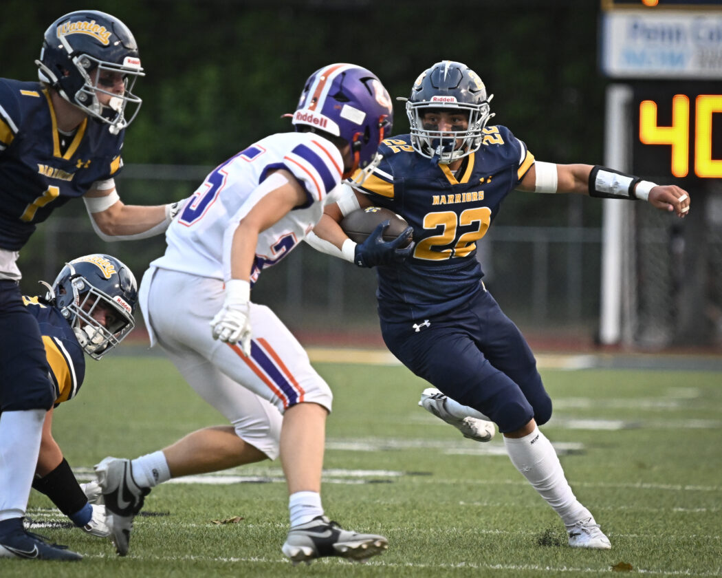 Montoursville took the lead into halftime on a drive that began with nice discipline place thanks to a punt return by Jay Houseknecht. On third and 9 from the 18-yard line, a cross interference name moved it to the 9. Then, after an incomplete cross, the Warriors picked up a vital fourth-and-1 play with a run by Hayden Harvey to the two-yard line earlier than Elijah Eck discovered Brayden Burkett ultimately zone for a landing with 34 seconds remaining within the half.