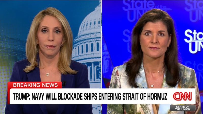 Former U.S. Ambassador to the United Nations Nikki Haley responds to President Trump saying a U.S. Navy blockade of the Strait of Hormuz telling Dana Bash, “Iran sees winning as putting as much political and economic pressure on Trump and the Gulf allies as they can. This is a game of chicken. It’s who caves first. And the Iranian regime is hoping that Trump will cave. Today, he showed he’s not.”