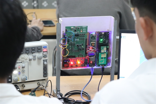 | Students at a expertise lab on the University of Technology and Education (a part of the University of Đà Nẵng). — VNA/VNS Photo Khoa Chương |