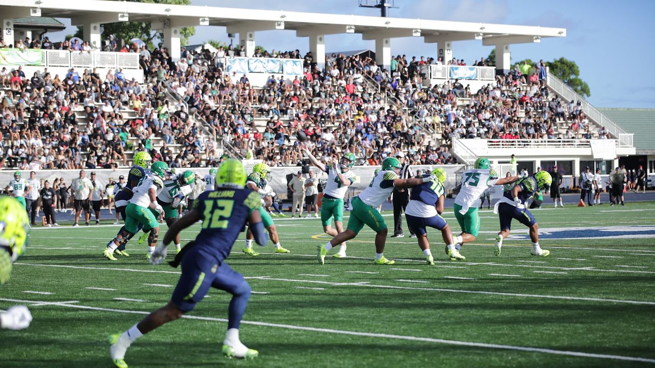 “What a backdrop that was,” Tanuvasa, a UH alumnus from Mililani and two-time Super Bowl champion with the Denver Broncos, mentioned of taking part in at Kamehameha for the final 4 years. “But because of logistics and the kids having school on the (Friday) that we have our game, it made it hard for their campus to be able to help us out and for us to have our game there. So, we were so blessed that the University of Hawaii was able to let us use their venue. Logistically, it’s perfect. Parking is great for our fans and for friends and family. The amenities there makes it easier to have a game like that be put on, especially (to be broadcast on) NFL Network.”