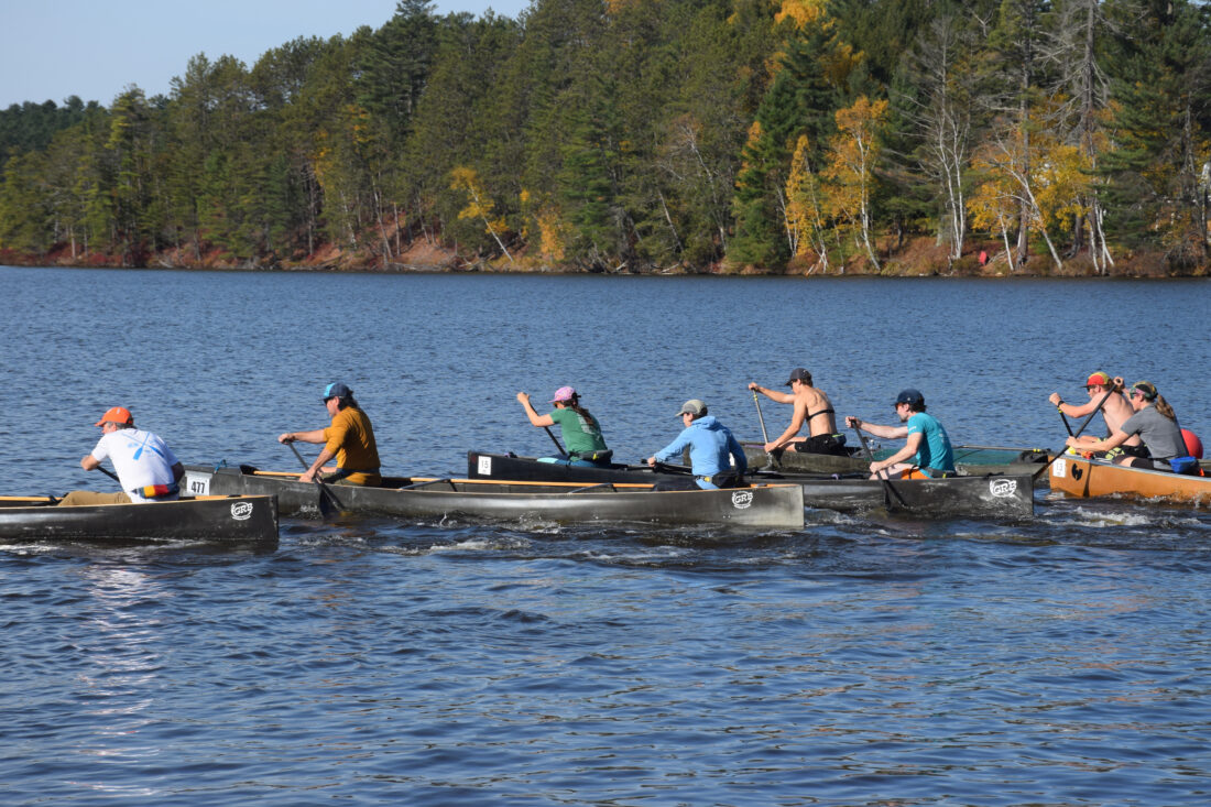 Paddlers take off firstly of the ‘Roundin Regis Regatta on Lower St. Regis Lake in Paul Smiths on Sunday.