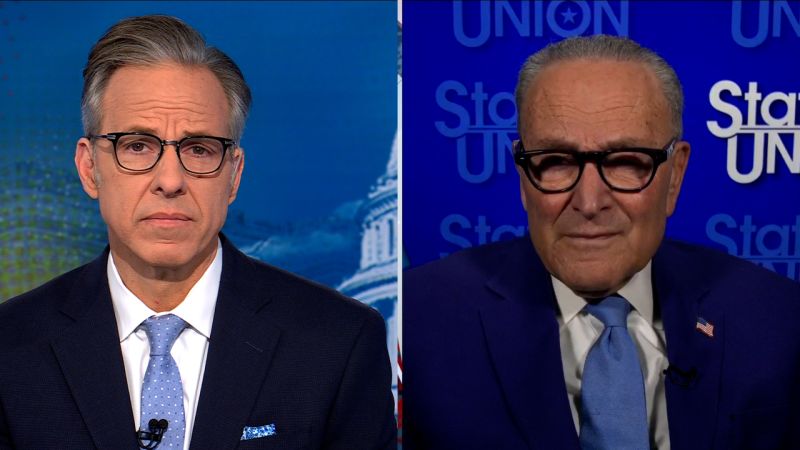 In response to DHS Secretary Kristi Noem saying it’s her division’s position to guarantee “we have the right people voting, electing the right leaders,” Senate Minority Leader Chuck Schumer tells Jake Tapper, “That’s a lot of bull… and to have ICE agents, these thugs, be by the polling places, that just flies in the face of how democracy works.”