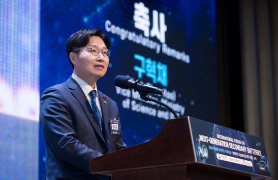 Koo Hyuk-chae, First Vice Minister of Science and ICT, speaks on the ‘2026 Next-Generation Secondary Battery International Forum’ on the Science and Technology Convention Center in Seoul on the fifth. Courtesy of MSIT.