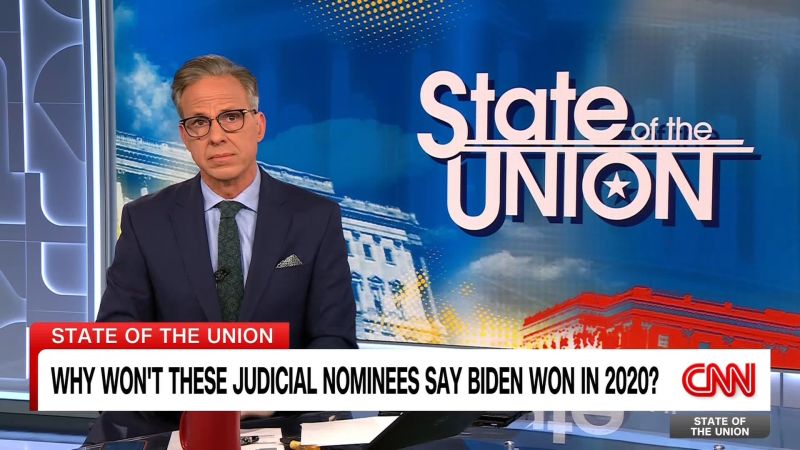 Tapper questions judicial nominees’ reluctance to acknowledge Trump lost in 2020 NCS Sources Share this: Share on Facebook (Opens in new window) Facebook Share on X (Opens in new window) X Post navigation Energy Secretary: Gas prices below $3 per gallon ‘might not happen until next year’ – NCS Tapper to Stefanik: ‘Is calling for wiping out an entire civilization bad or good?’