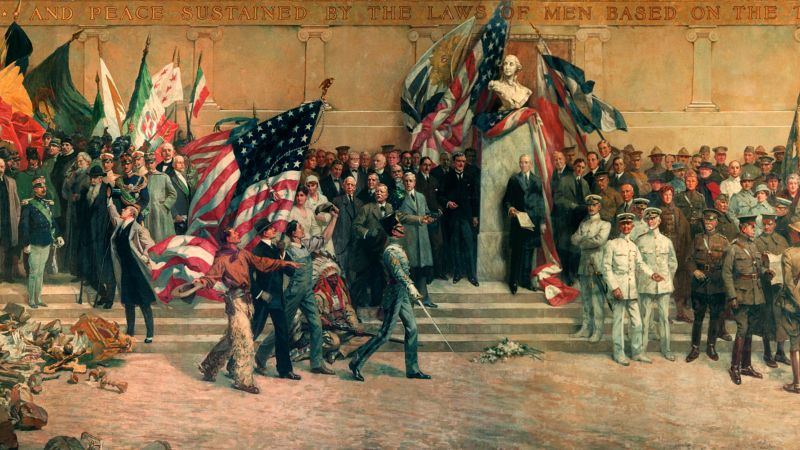 “MacMorris centered it on the US,” the museum’s archivist, Jonathan Casey, mentioned in a telephone interview. “He put Woodrow Wilson and all the American political and military leaders in the center, with the Allies on either side – the whole ‘Panthéon’ scene with all the French soldiers was just totally removed. You get a whole different sense from it, with America dominating and coming out (looking) most responsible for the victory.”