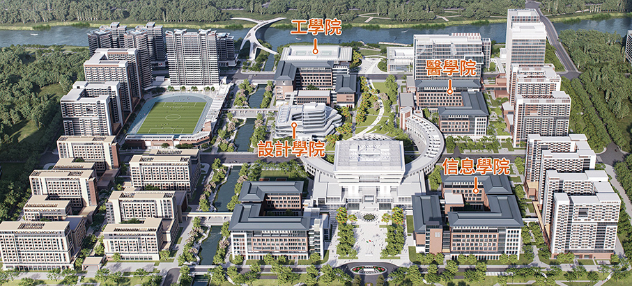This artist’s rendition supplied by the University of Macau (UM) on Friday exhibits the headquarters of the long run Faculty of Medicine (prime proper), Faculty of Information Science and Computing (backside proper), Faculty of Engineering (prime left), and Faculty of Design positioned on the campus within the Guangdong-Macau In-Depth Cooperation Zone in Hengqin. The rendition doesn’t present the college’s future Faculty of Science which will likely be positioned elsewhere.