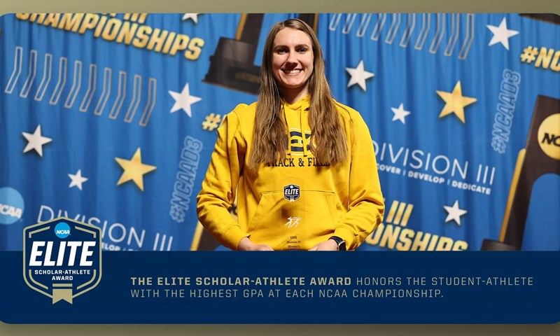 –Kayla Behnke, a senior on the University of Wisconsin-Eau Claire, is the recipient of the Elite Scholar-Athlete Award for the 2025 NCAA Division III Women’s Indoor Track & Field Championship.