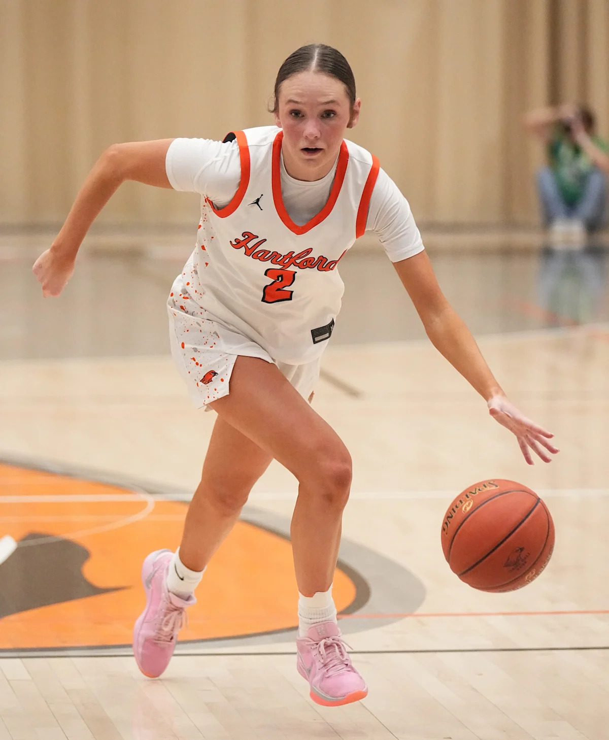Hartford’s Bella Klages (2) races downcourt throughout the sport at house in opposition to Cedarburg on Thursday, Feb. 13, 2025. Hartford gained the sport, 78-49.