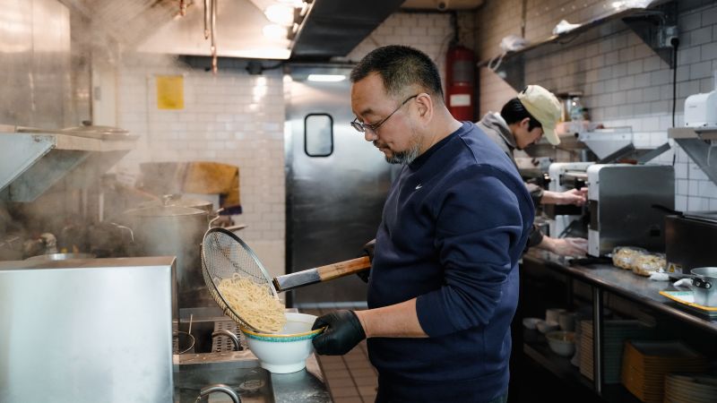 As steam rises from the range, Ma Ruilin hand-pulls contemporary noodles for the lunch service at the Chinese restaurant he runs in New York.
