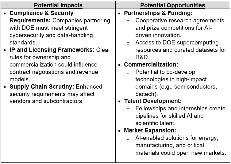 Advocates of the order promote advantages such because the acceleration of scientific discovery and the alternatives for public-private partnerships, whereas its critics stay involved about sustained funding, and whether or not this may merely subsidize massive AI corporations – they be aware the order doesn’t point out open supply AI improvement sparking debate about whether or not it’s going to favor incumbents like OpenAI, Anthropic, and Google. They additionally warn of information privateness, IP threat and different safety implications round integrating proprietary knowledge units, managing IP rights, and the usage of agentic AI.