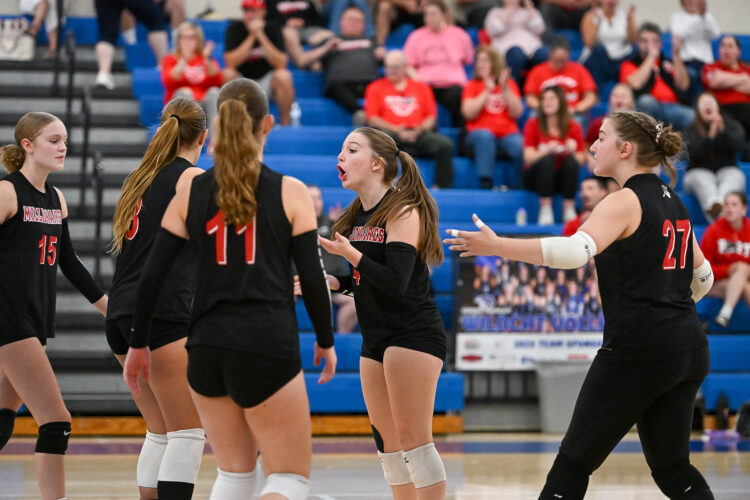 Central Mountain celebrates throughout a volleyball match towards Williamsport on Tuesday, Sept. 30, 2025, at Central Mountain. The Wildcats gained 3-1.
